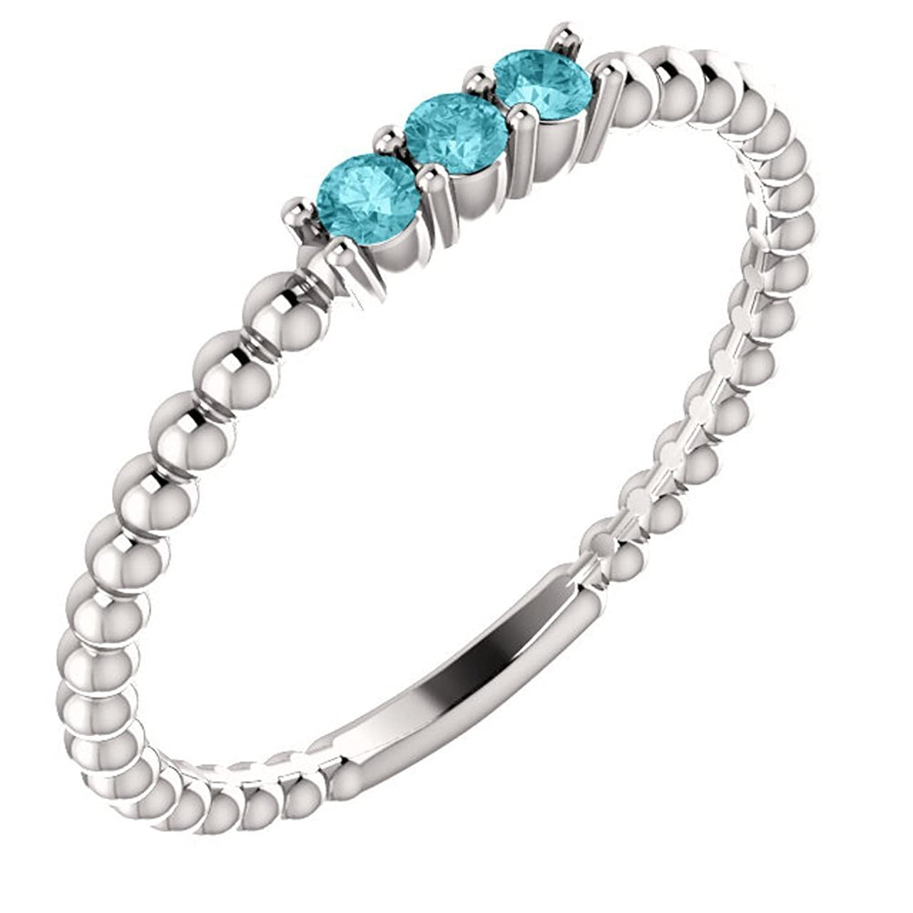 Blue Zircon Beaded Ring, Rhodium-Plated 14k White Gold, Size 6