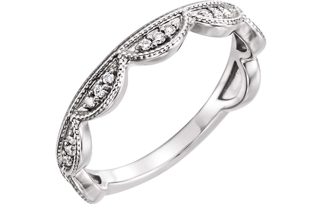 Diamond Scallop Stacking Ring, Rhodium-Plated 14k White Gold (.125 Ctw, GH Color, I1 Clarity) Size 6