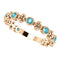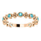 - Alternating Round Genuine Blue Zircon and Quatrefoil Beaded Flower Link Forming High Polished Ring; Crafted in 14k Rose gold