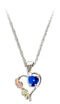 Ave 369 Dark Blue CZ September Birthstone Heart Pendant Necklace, Sterling Silver, 12k Green and Rose Gold Black Hills Gold Motif, 18"
