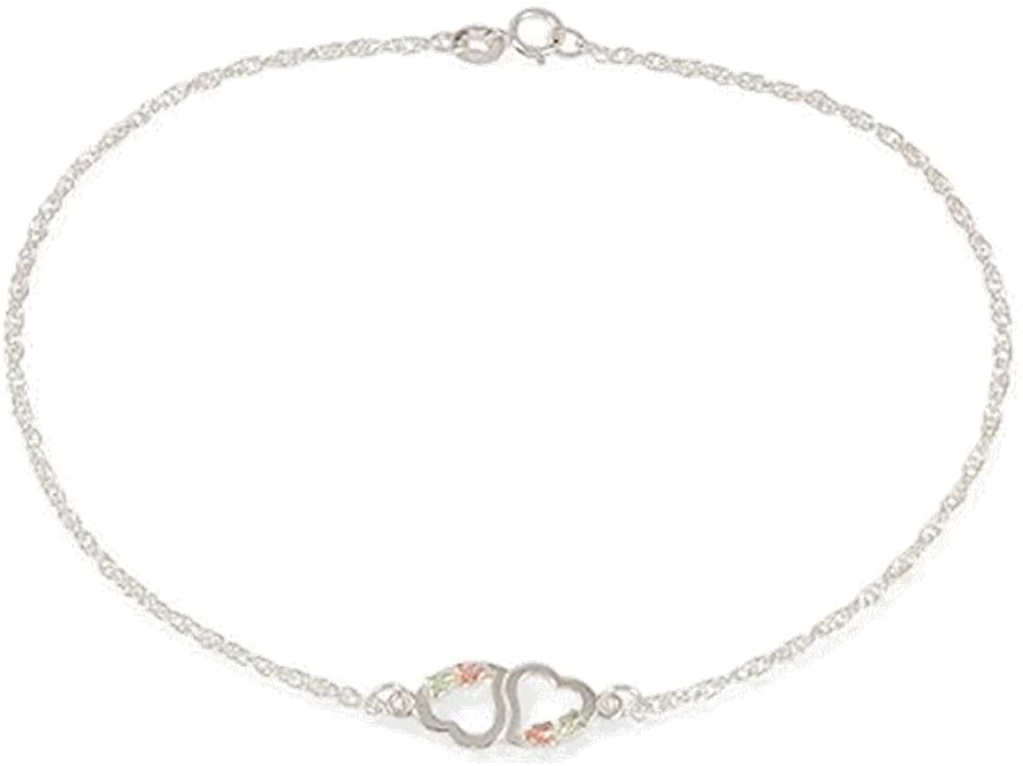 Black Hills Gold Sterling Silver Hearts Ankle Bracelet, 12k Green and Rose Gold