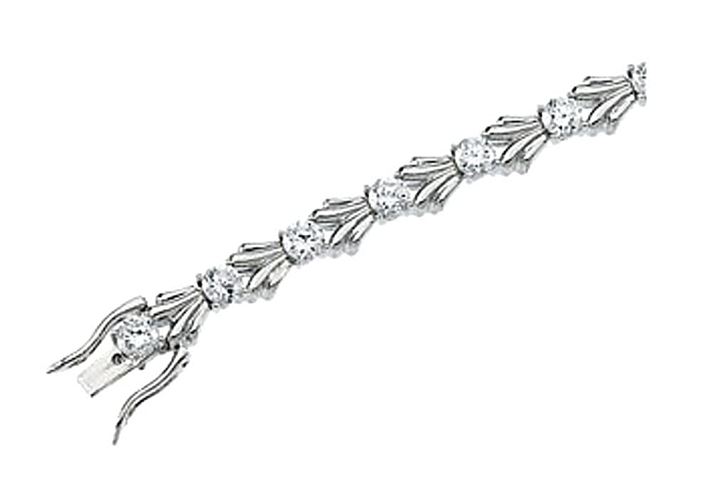 CZ Fancy Sterling Silver Tennis Bracelet, 7.25"