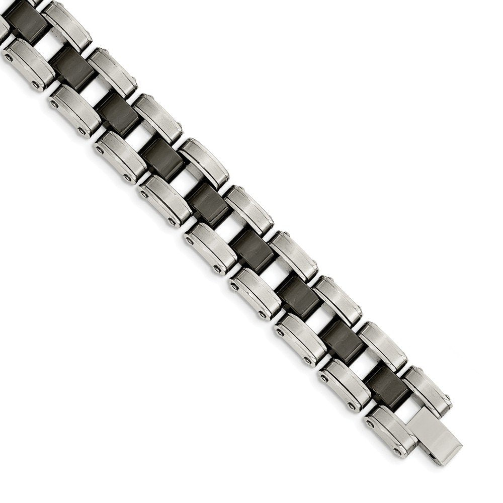 Men's Brushed and Polished Stainless Steel Black Ceramic Link Bracelet, 8.5"