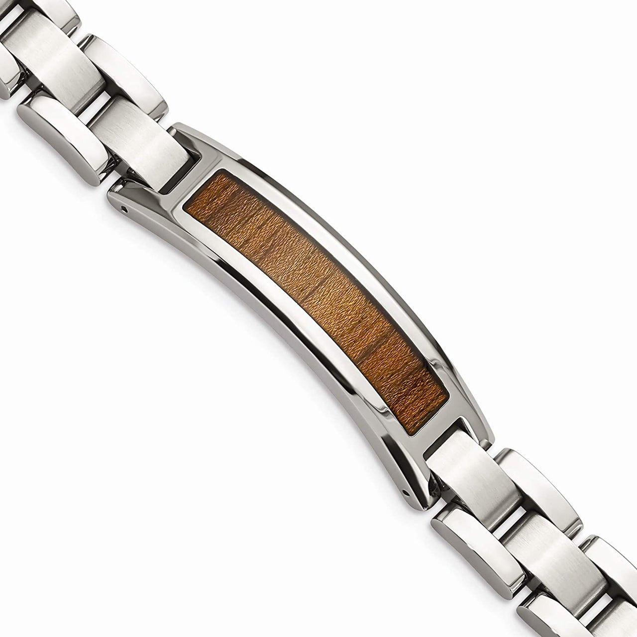Men's Brushed Stainless Steel 12mm Wood Inlay Enameled Bracelet, 8.5 Inches