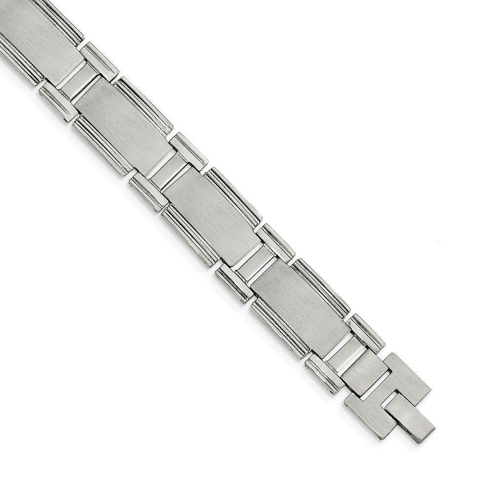 - Brushed Rectangle with Grooved Line on Side Interlinked Connected to an H-Bar Pattern; Bracelet is Crafted in Hypoallergenic Polished Stainless Steel