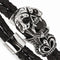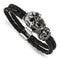 • Double Row Black Glass Leather Bracelet in Woven Pattern with Antiqued Skull Charm On-Centre with Toggle Clasp; Crafted in Hypoallergenic Polished Stainless Steel