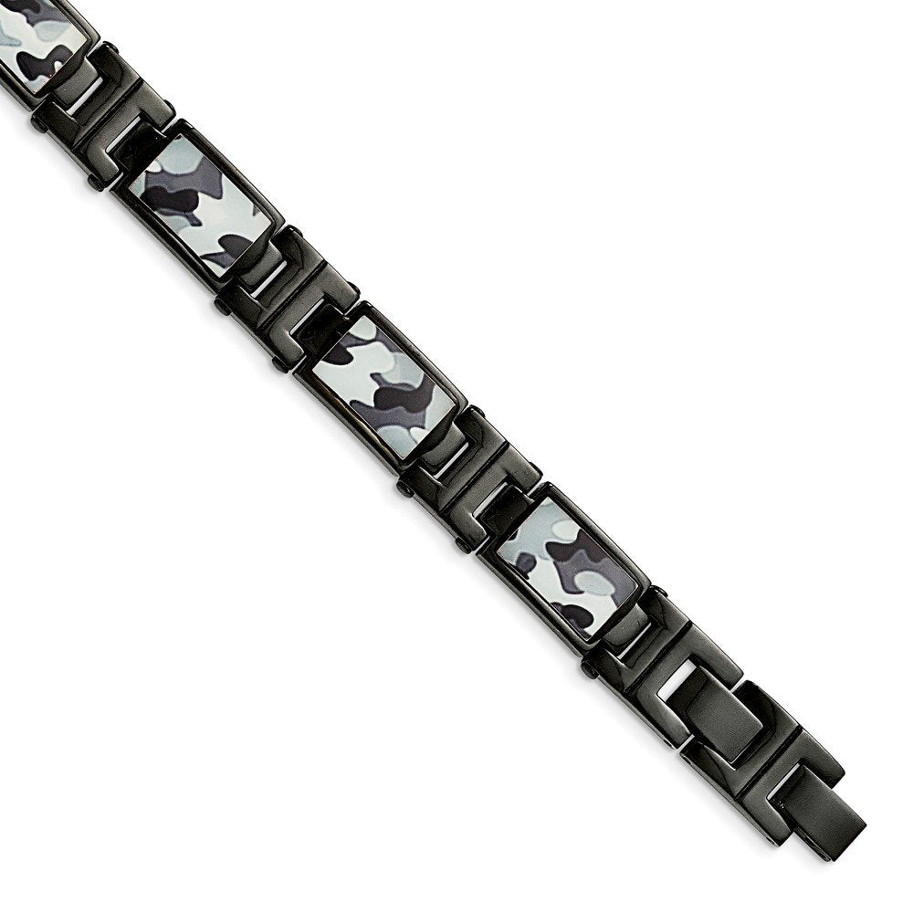 Men's Polished Stainless Steel Black IP-Plated Camouflage Bracelet 8.5"