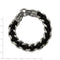 - Black Leather Bracelet with Antiqued Two Dragon Head Attached with Push Clasp; Crafted in Hypoallergenic Polished Stainless Steel