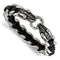 Men's Polished Stainless Steel Black Leather Antiqued Dragon Head Bracelet, 8.5"