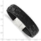 • Black Leather Bracelet in Woven Pattern with Magnetic Clasp; Crafted in Hypoallergenic Polished Stainless Steel