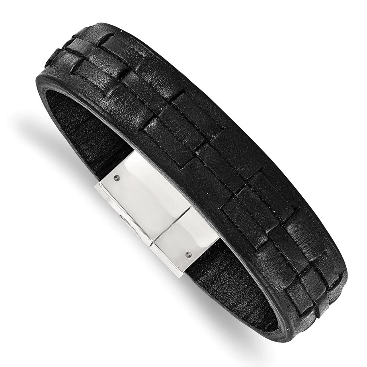 Men's Polished Stainless Steel Black Leather Bracelet, 8" Men's Polished Stainless Steel Black Leather Bracelet, 8" Men's Polished Stainless Steel Black Leather Bracelet, 8" Men's Polished Stainless Steel Black Leather Bracelet, 8"