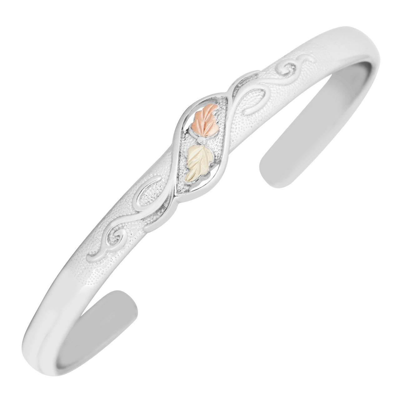 Petite Hammered Finish Leaf Bracelet, Sterling Silver, 12k Green and Rose Gold Black Hills Gold Motif, 7"