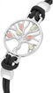 - Round Medallion with an Open-Cut Tree Adorned by Petite Hand-Engraved Grape Leaves; the Tether is Crafted in Black Leather; the Bracelet Medallion is Crafted in Polished, Hypoallergenic Rhodium Plated Sterling Silver