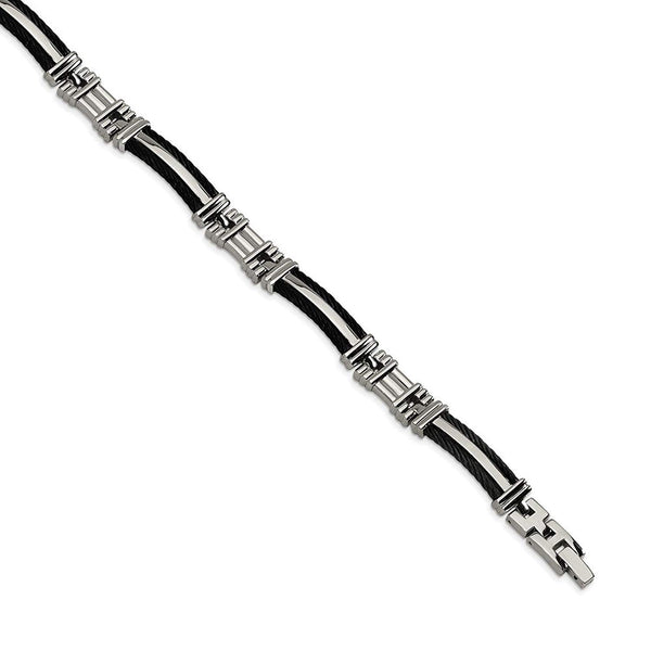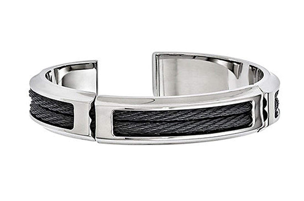 Men's Black Braided Wire with CZ Bracelet, Stainless Steel, 8.5"