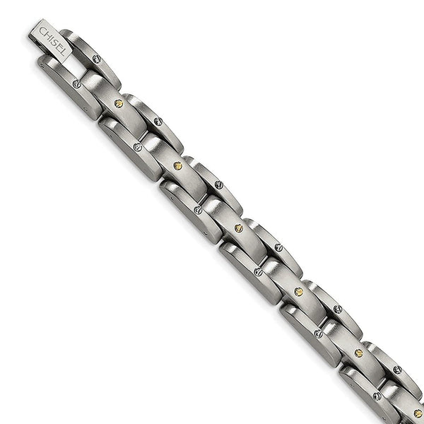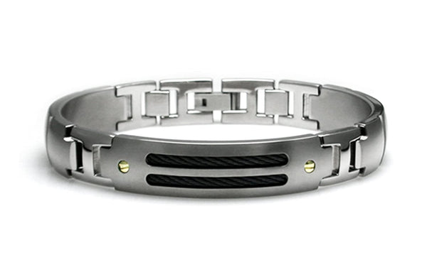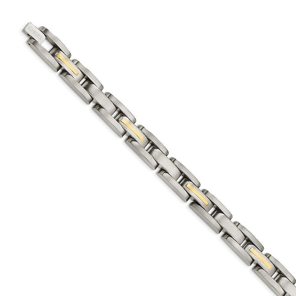 Men's Grey Titanium 10mm Yellow IP-Plating Bracelet, 8.5 Inches