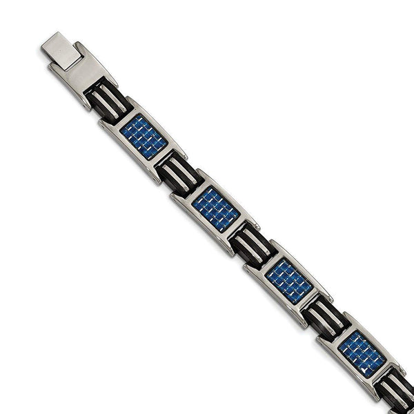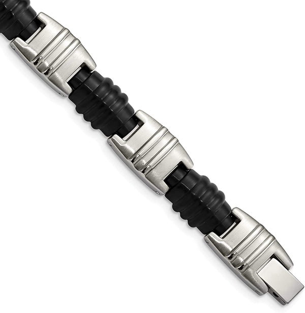 Men's Brushed Stainless Steel 14mm Black Rubber Bracelet, 9.25"