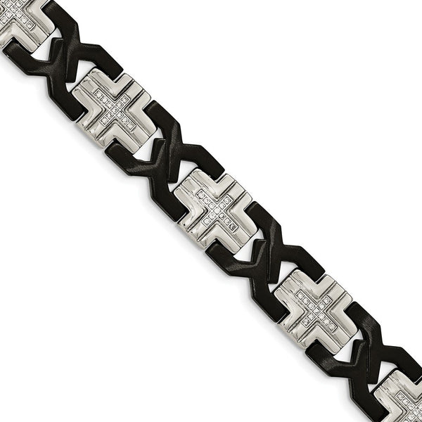 Men's Brushed Stainless Steel with CZ Link Bracelet 8.75"