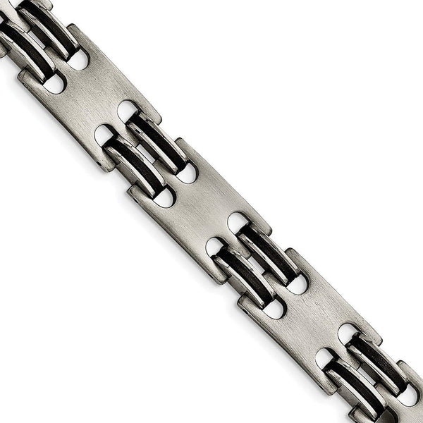 Men's Black Ceramic Link Bracelet, Tungsten, 8.5"