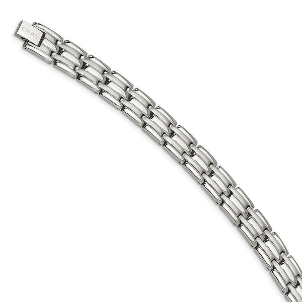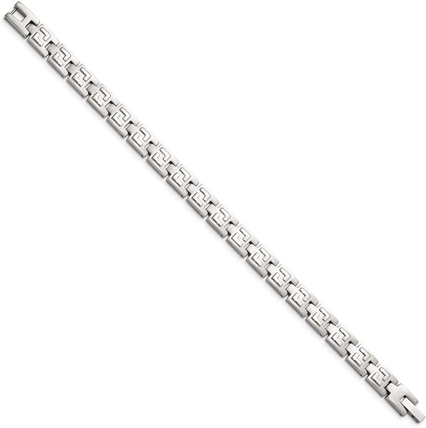 Men's Brushed and Polished Stainless Steel Link Bracelet, 8.5"