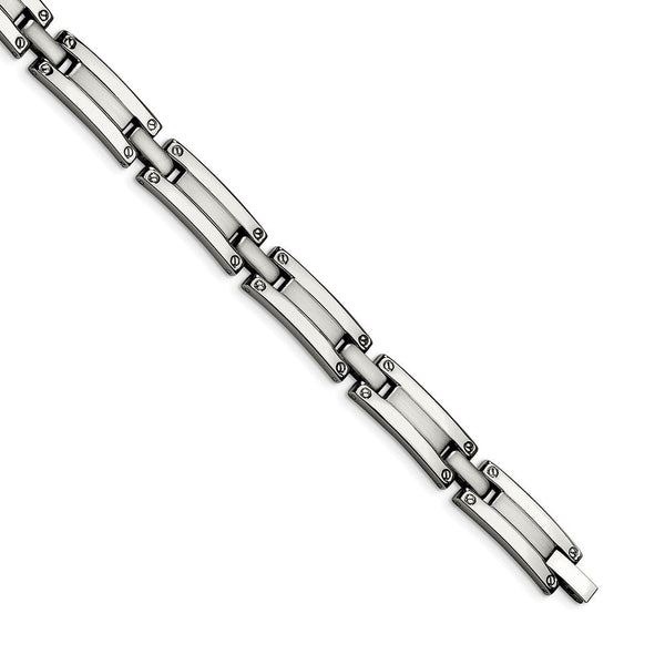 Men's Brushed Stainless Steel CZ Link Bracelet, 8.5 Inches