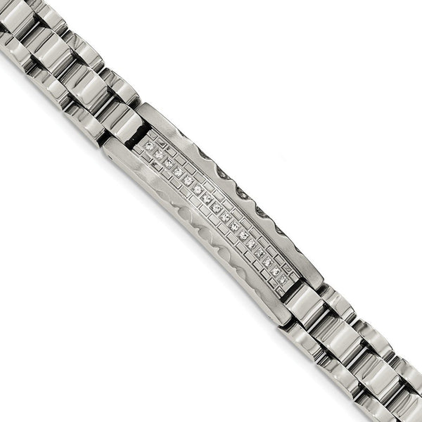 Men's Brushed Stainless Steel 13mm CZ Link Bracelet, 8.25 Inches