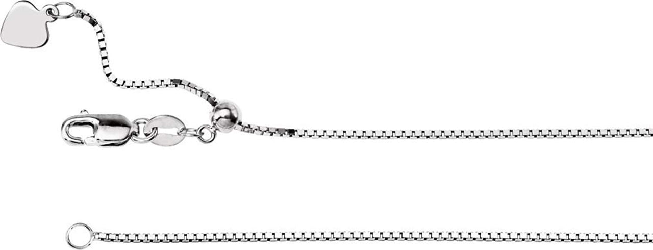 - Adjustable Box Chain Measures 1.00 Millimeters Wide and .04 Inches Wide
