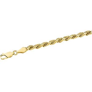 3.9mm 14k Yellow Gold Diamond Cut Rope Chain Bracelet, 7"
