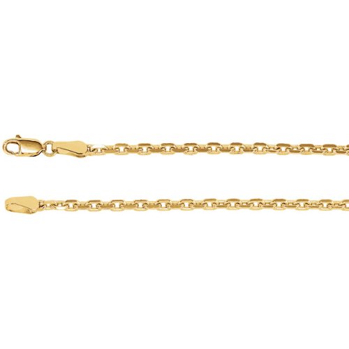 2.5mm 14k Yellow Gold Diamond Cut Cable Chain, 18"