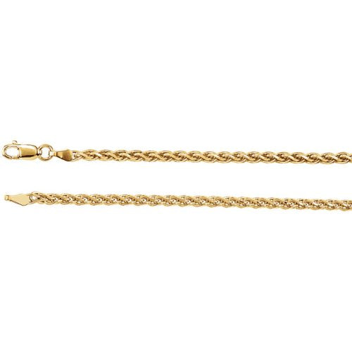2mm 14k Yellow Gold Diamond Cut Wheat Chain, 18"