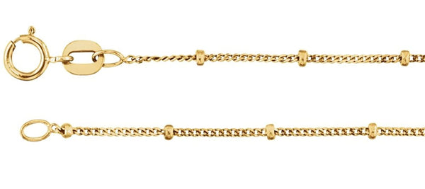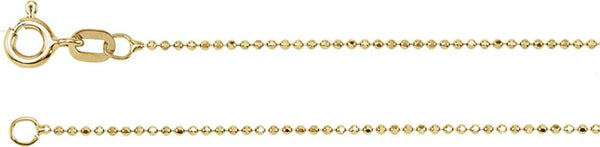 1mm 14k Yellow Gold Solid Diamond Cut Bead Chain, 18"