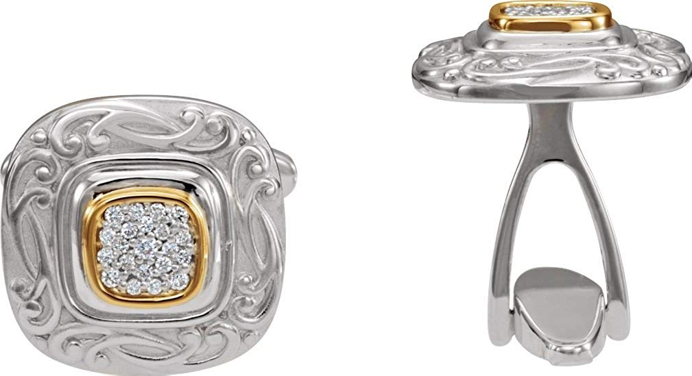 - Forty-Two Pave-Set Diamonds Contrasted by a Raised Gold Band and Raised Scrollwork, the Square Links have Whale Back Clasps; Cuff Links are Crafted in Polished Sterling Silver and 14k Yellow Gold