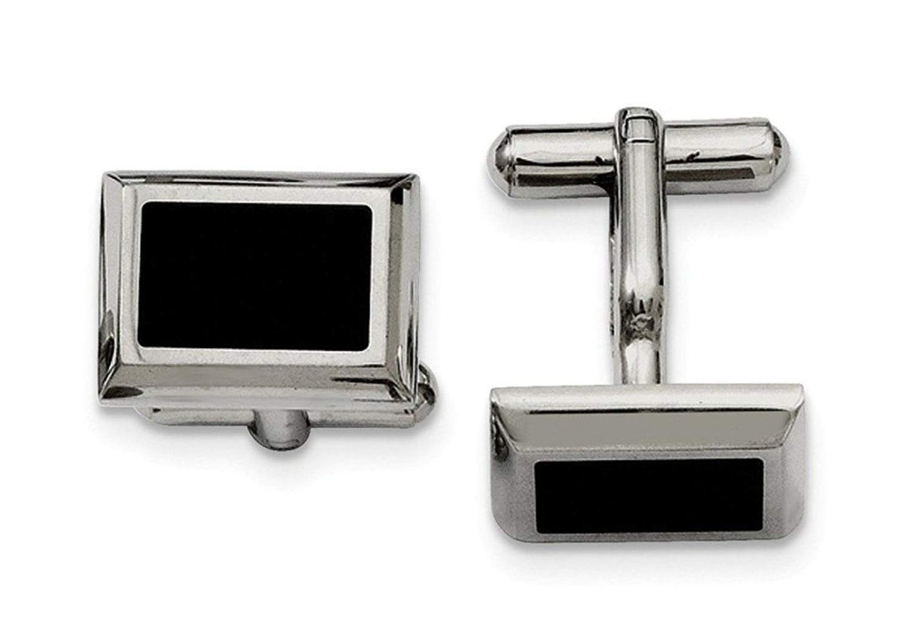 Black IP-Plated Stainless Steel Rectangle Cuff Links, 15X18MM