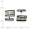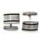 - Brushed Rectangle Accented with Black Rubber Stripes delineating the Polished Edges; Cuff Links are Hand-Finished in Polished Stainless Steel