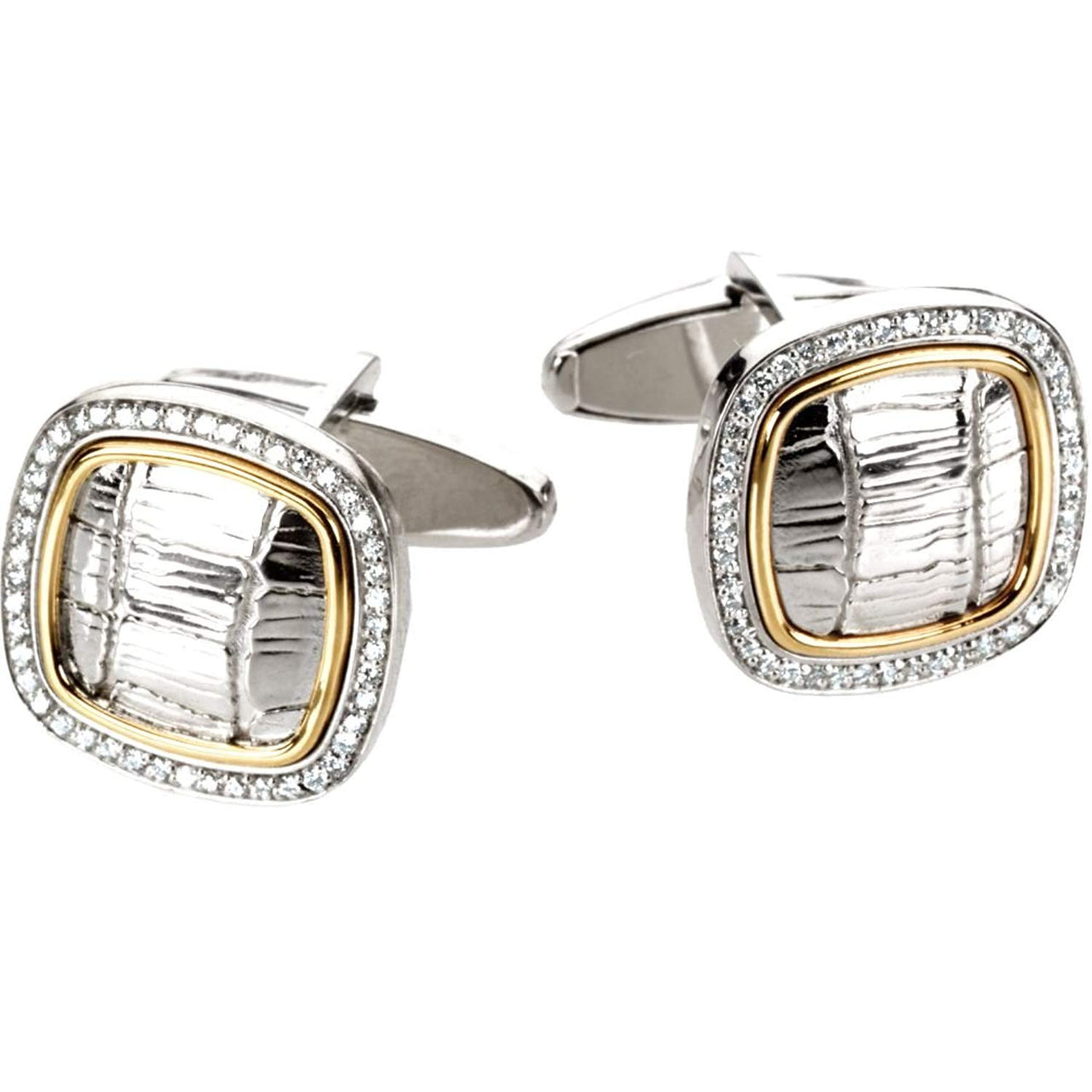 Diamond Alligator Skin Pattern Cuff Links, Sterling Silver, 14k Yellow Gold (.50 Ctw, GH Color, Clarity I1 )