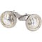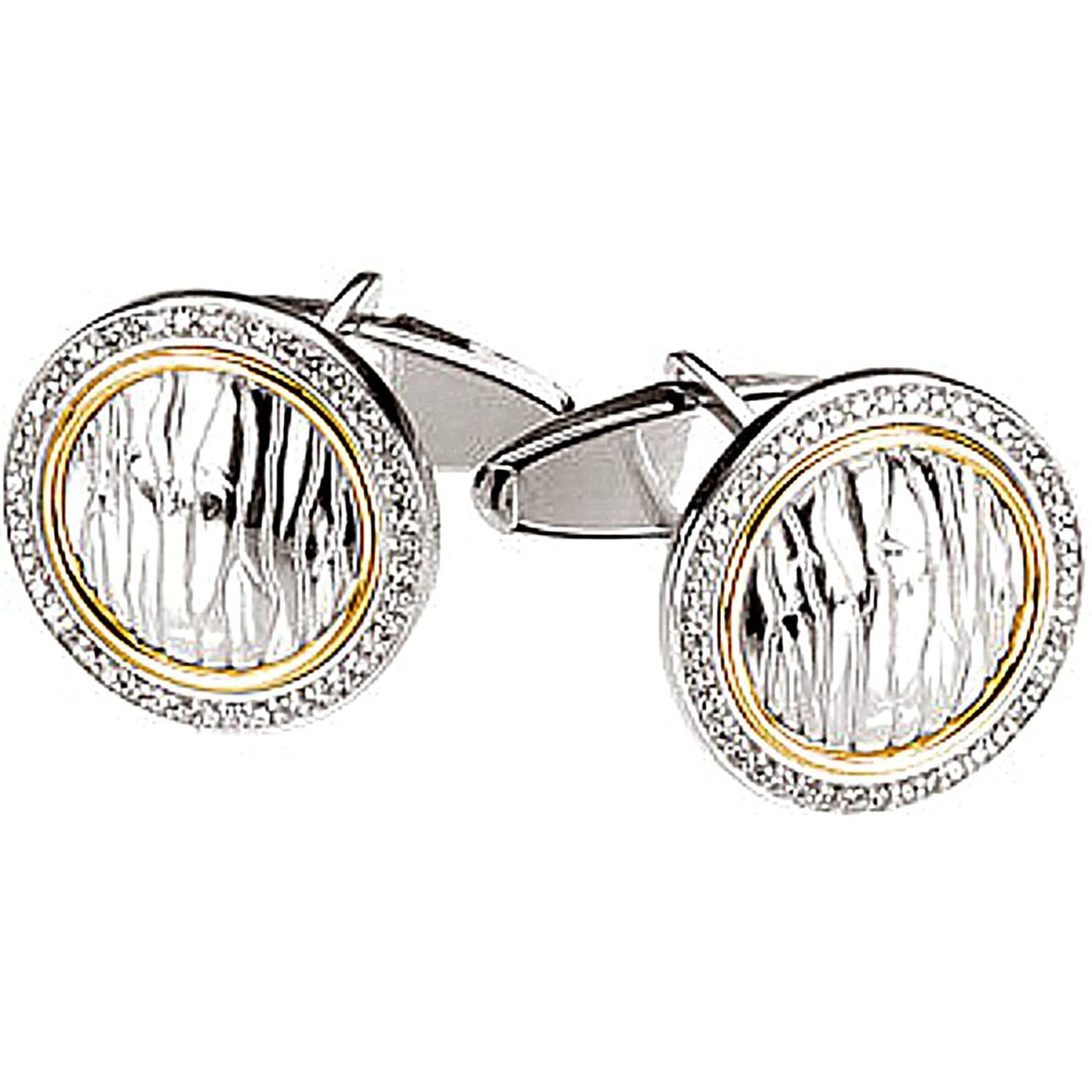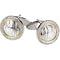 - Round Cuff Links have an Elephant Skin Pattern Encircled by Ninety-Two Diamonds and a Whale Back Clasp; Cuff Links are Crafted in Polished Sterling Silver and 14k Yellow Gold