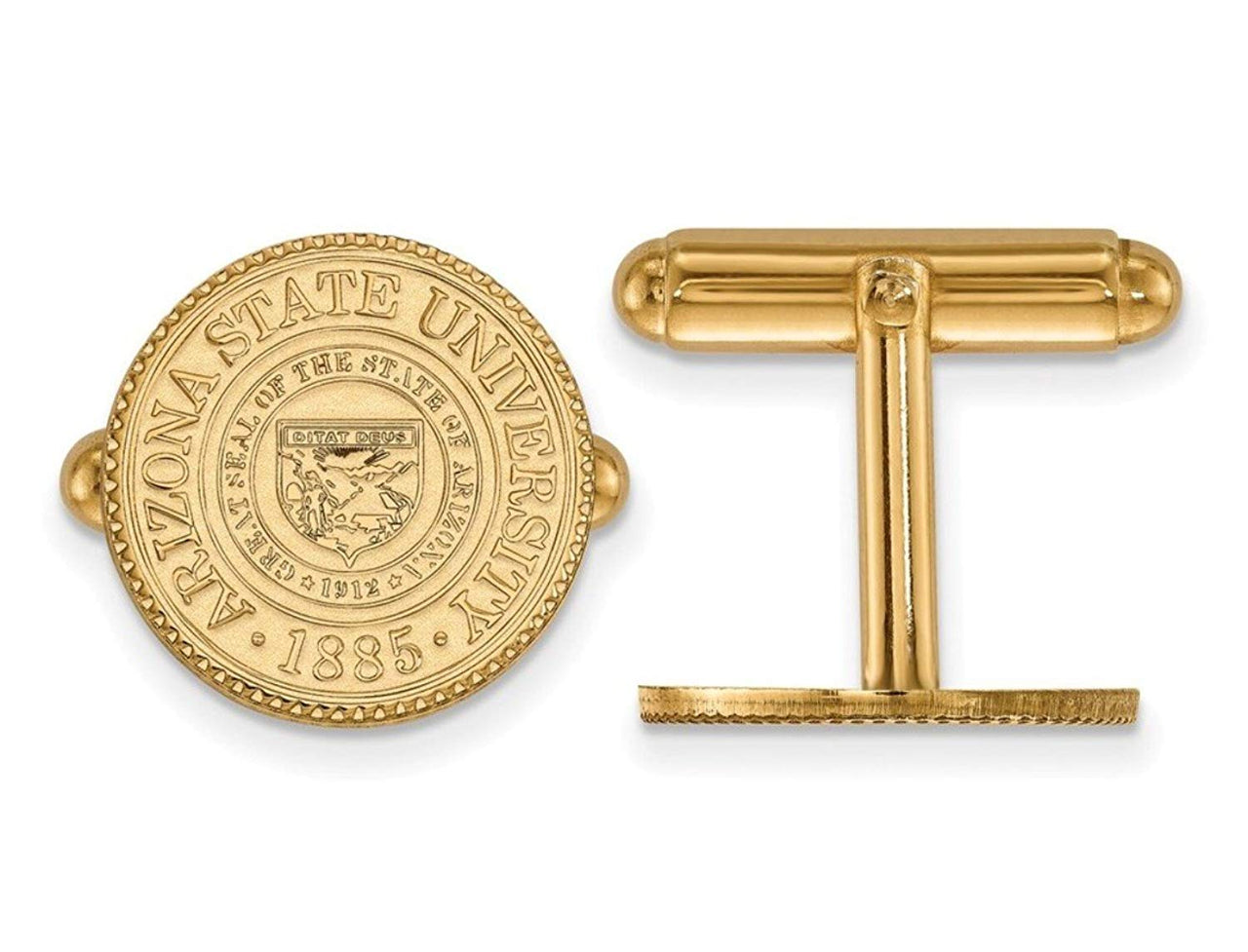 - NCAA Arizona State University Crest Engraved on the Round Cuff Links with Raised Text 'ARIZONA STATE UNIVERSITY' Finished with Bullet Back Clasps; Finished with Bullet Back Clasps; Hand-Finished in Polished Gold Plated and Sterling Silver