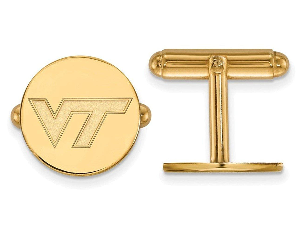 - NCAA Virginia Tech Engraved on the Round Cuff Links with Raised Text 'VT' Finished with Bullet Back Clasps; Finished with Bullet Back Clasps; Hand-Finished in Polished Gold Plated and Sterling Silver