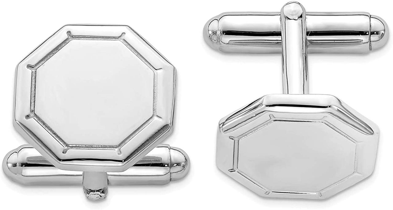 Italian Rhodium-Plated Sterling Silver Engravable Octagon Cuff Links, 16 Millimeters