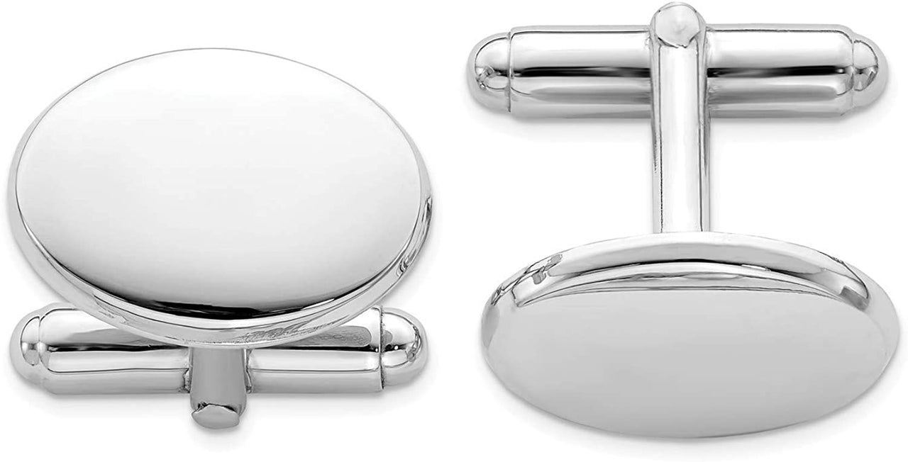 Italian Rhodium-Plated Sterling Silver Engravable Oval Cuff Links, 13X18 Millimeters