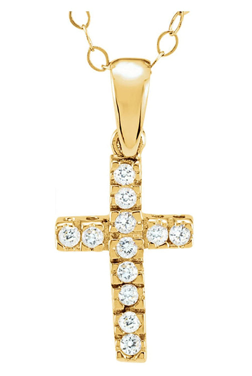 Girl's 14k Yellow Gold Cubic Zirconia Cross Pendant Necklace, 15"