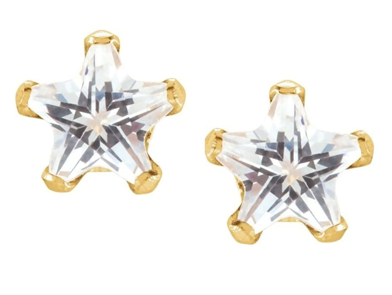 Girl's Cubic Zirconia Star Earrings, 14k Yellow Gold