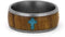 - Comfort-Fit, Matte Finish, Titanium Sleeve Encases by Olive Wood with Engraving Turquoise Cross Overlay; Dome Profile Band