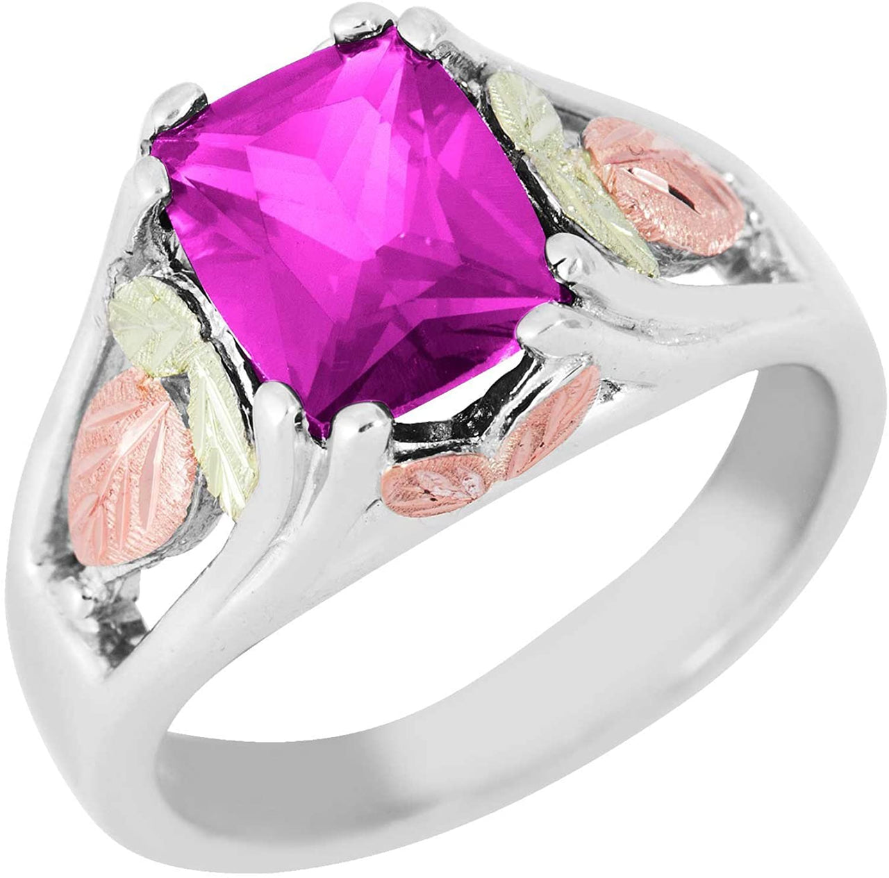 October Birthstone Created Rose Zircon Ring, Sterling Silver, 12k Green and Rose Gold Black Hills Silver Motif