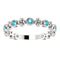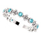 - Alternating Round Genuine Blue Zircon and Quatrefoil Beaded Flower Link Forming High Polished Ring; Crafted in Platinum