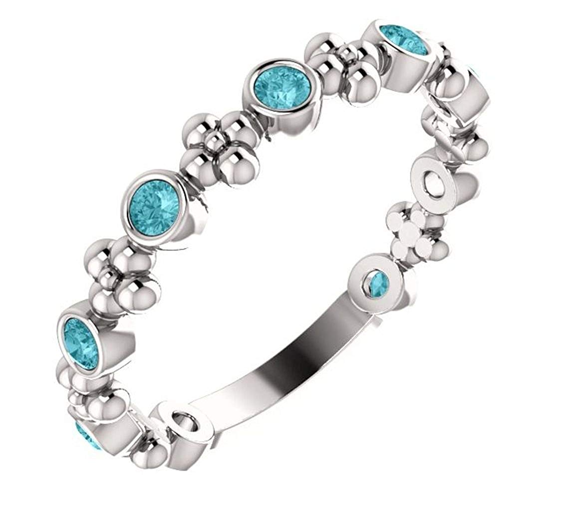 Platinum Genuine Blue Zircon Beaded Ring