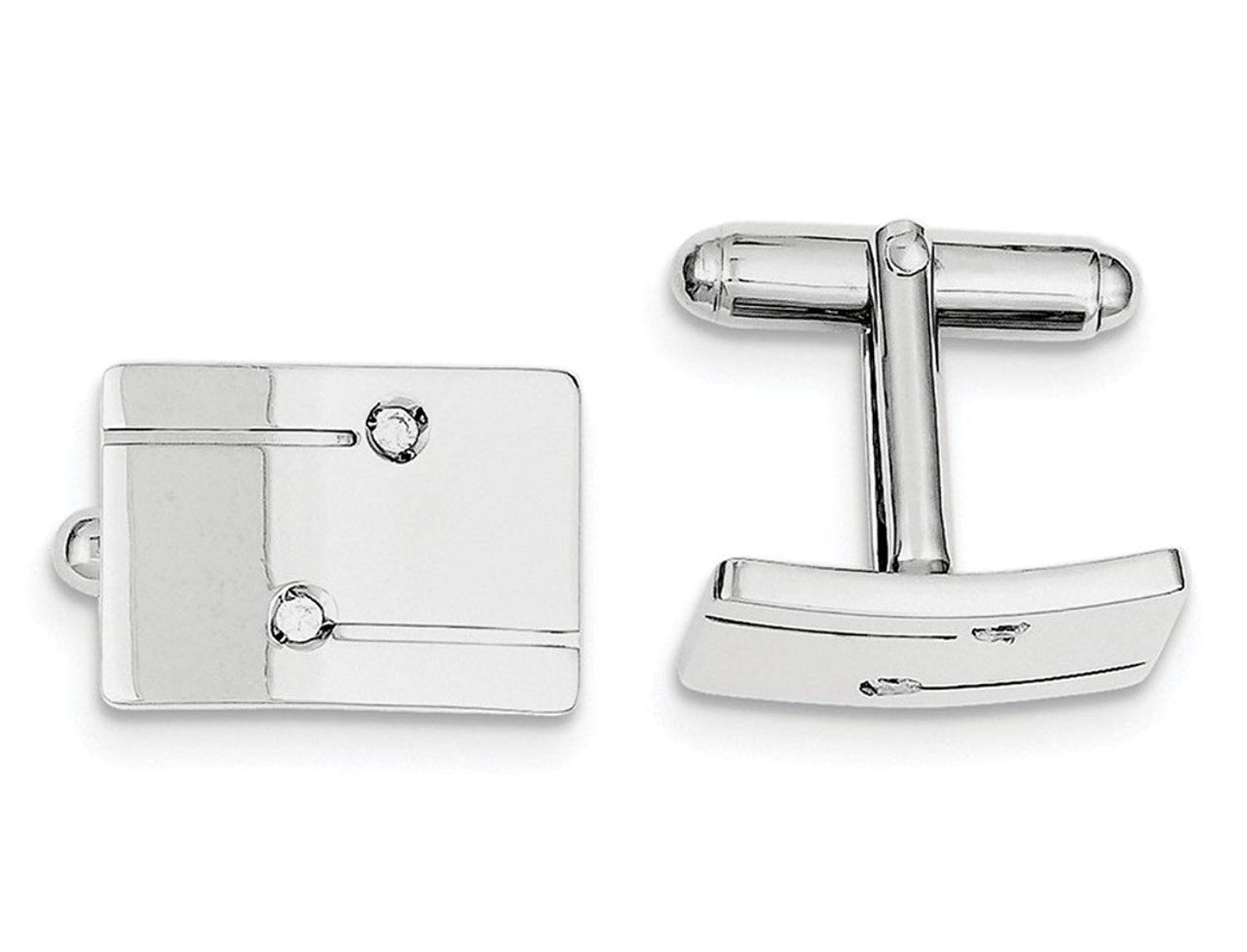 - Rectangle Cuff Links with Two Cubic Zirconias and Two Grooved Stripes; Hand-Finished in Polished Rhodium-Plated Sterling Silver