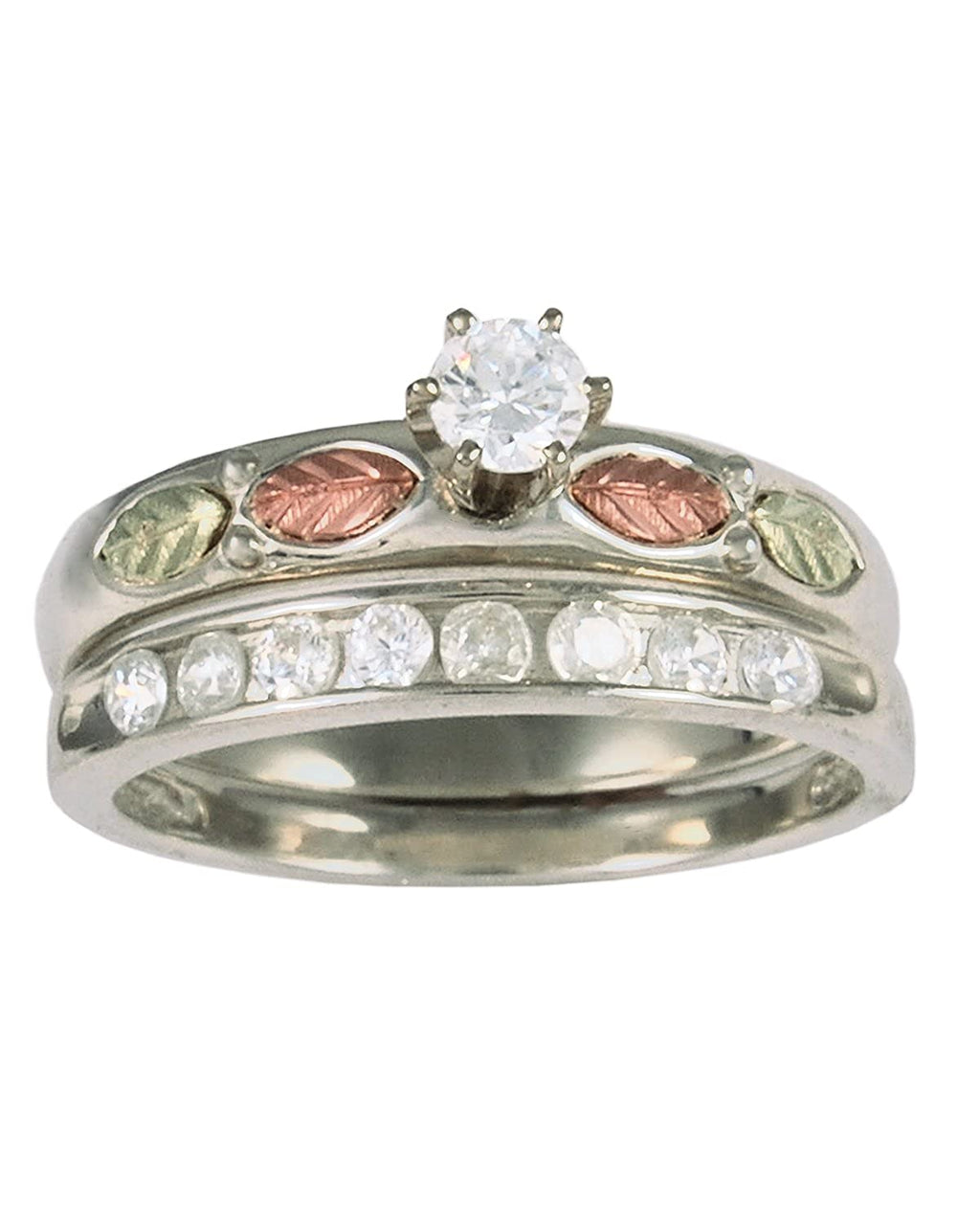 Sterling Silver Cubic Zirconia Wedding Ring Set with 12k Yellow and Green Gold, Sizes 4, 4.5, 5, 5.5, 6, 6.5, 7, 7.5, 8, 8.5, 9
