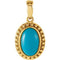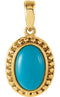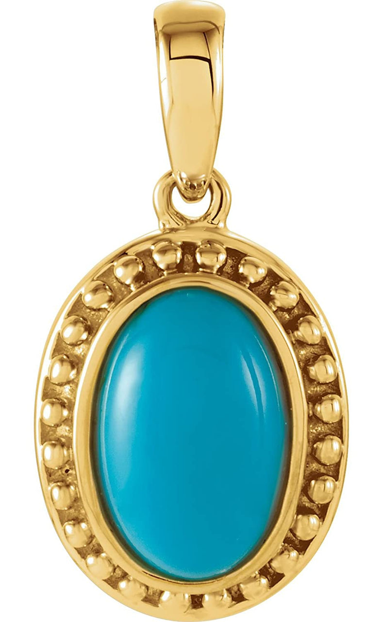 - Granulated Bead Edging Frames an Oval, Bezel Set Cabochon Turquoise Gemstone; Pendant is Crafted in Polished 14k Yellow Gold