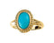 - Granulated Bead Edging Frames an Oval, Bezel Set Cabochon Turquoise Gemstone; Ring is Crafted in Polished 14k Yellow Gold