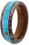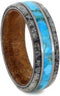 - Comfort-Fit, Brushed Finished, Hypoallergenic Mesquite Wood Sleeve Surrounded by an Deer Antler Overlay and Turquoise On-Center with Titanium Pinstripe; Both Antler Bands are Continuous with no Joints; Domed Profile Band